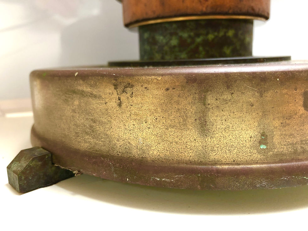 Unique handmade candlestick, brass detailing, ca. 1930's